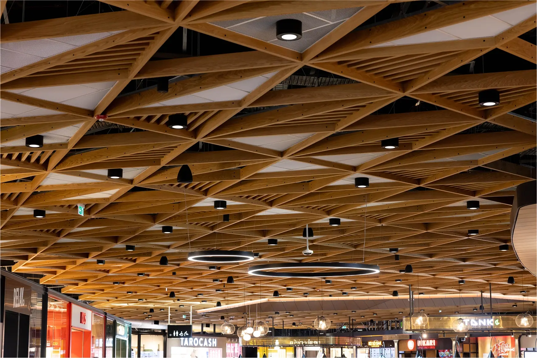 Manawa Bay’s custom Featurecraftgrid ceiling, above the food court.
