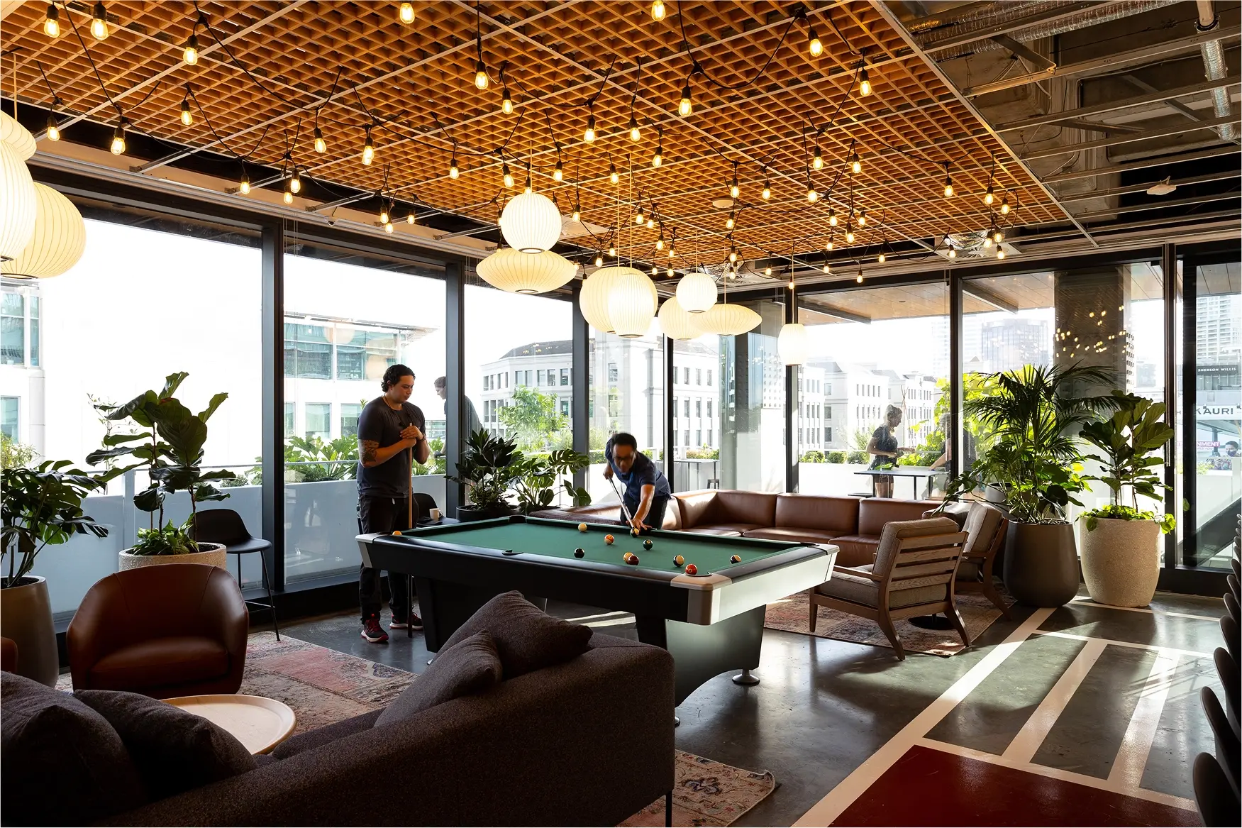 Or how about the 2degrees Head Office at Fanshawe Street? For this project, we crafted a custom ceiling grid from Western Hemlock timber. This intricate structure beautifies the social space in the office, inviting coworkers and guests to mingle and stay present in the shared moment.