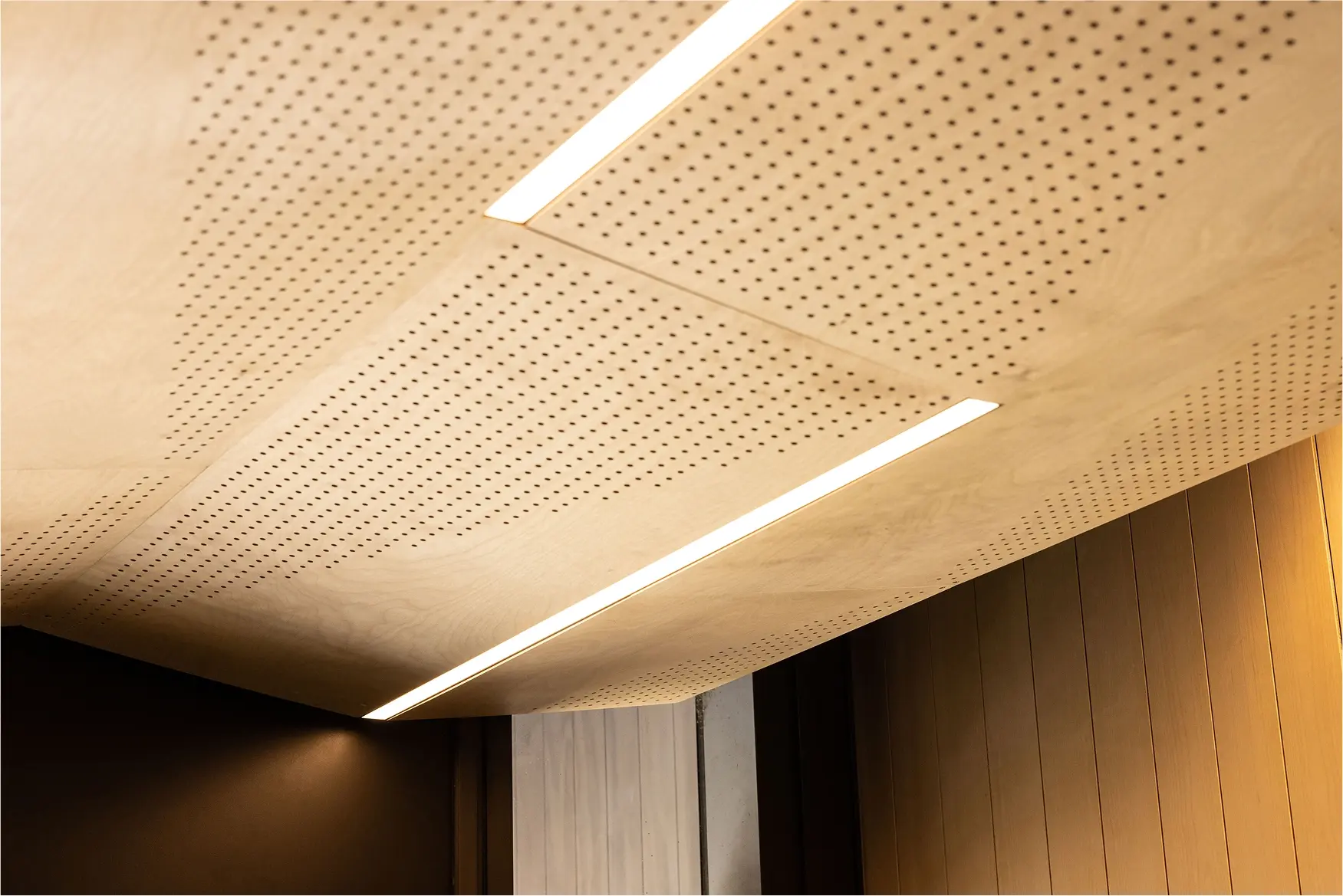 Custom, perforated fire rated plywood panels at the Risland Apartment Complex, Albany.
